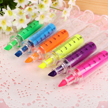 Jeringa resaltador pluma promocional jeringa marcador pluma